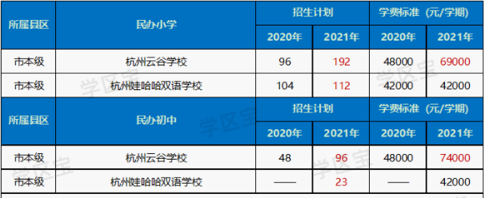 市本级两所学校,今年都有扩招,尤其是云谷学校,招生人数相比去年翻倍。同时,云谷学校的学费也是上涨了不少,而两所学校学费在杭州民办学校里来说都是比较高的。