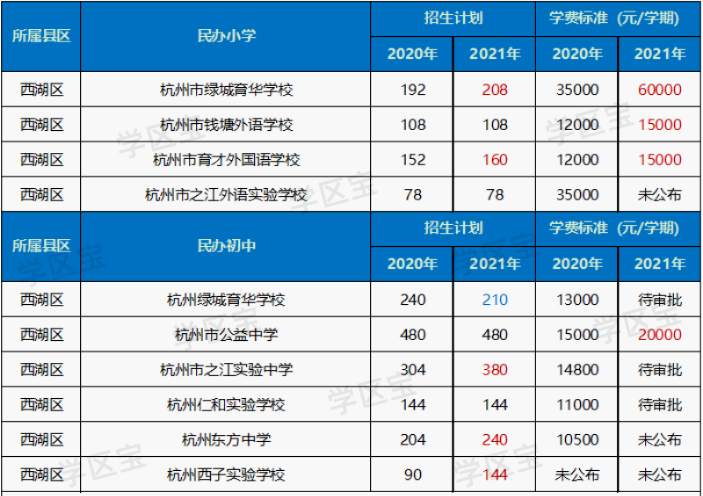 在此之前,可以先来了解一下杭州市各民办学校的学费情况。毫无悬念,与2020年相比,今年又是很多学校的学费涨了,还涨的不少,一起来看看吧!