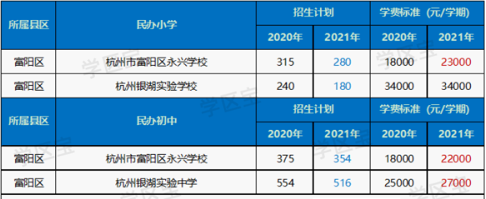 富阳区的几所民办学校今年招生计划都有所减少,学费也都有上涨,涨幅大概是2千到5千左右。