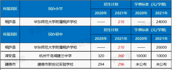 桐庐、淳安、建德的这几所学校招生计划都有扩招,学费仍然保持平稳。