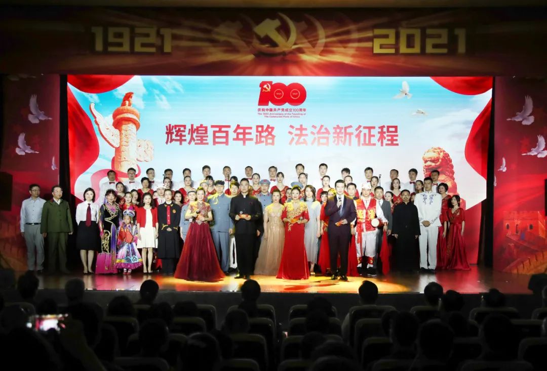 图为最高人民法院机关举行庆祝建党100周年干部职工文艺演出。孙若丰 摄“那条红船风中起航,那座星火燎原的井冈,那是遵义会议挽狂澜,那是西柏坡走来的自强……”在男声独唱《百年放歌》的嘹亮歌声中,文艺演出拉开序幕。
