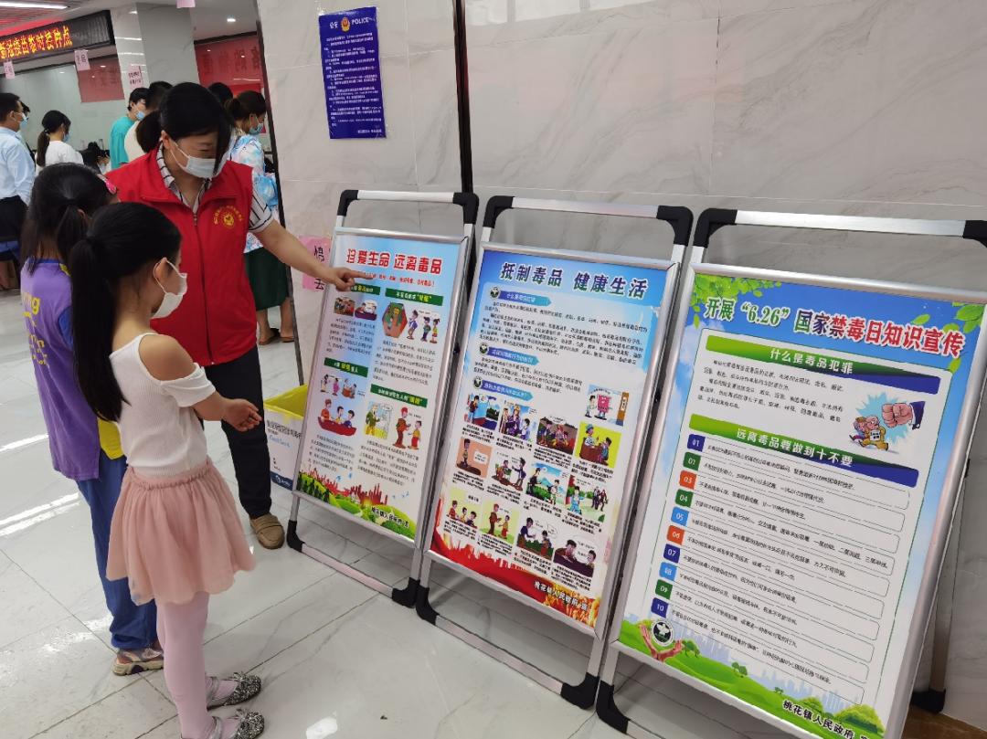 活动现场,巾帼志愿者通过摆放宣传展板形式,对来往的青少年儿童用简单且易通俗易懂的的语言以及身边形形色色的案例向他们讲解毒品的危害性,让他们从小树立“珍爱生命、远离毒品、健康生活”的意思。除此之外,并提醒孩子们在暑假来临之际,要提高自己的安全防范意识,不接受陌生人给予的免费食物、玩具,注意家庭用水、用电、用气安全等暑期安全防护知识。