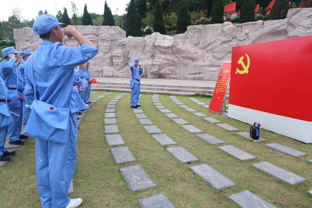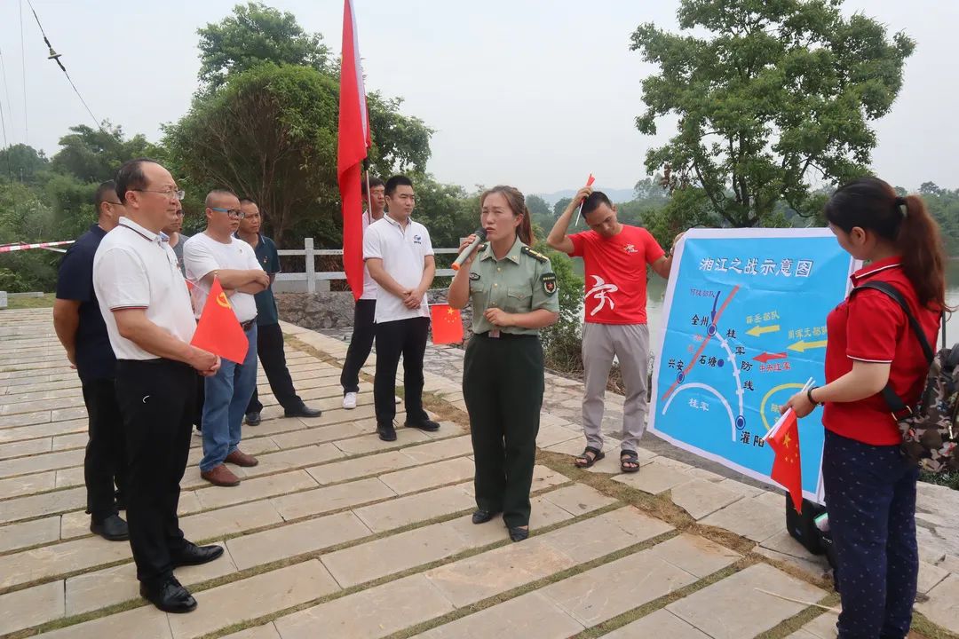 在红军长征湘江战役战斗遗址,党员干部们聆听大坪渡口的英雄历史,真切感受红军突围的艰辛以及坚定的信念,通过诵读诗歌《湘江为英雄歌唱》、向湘江河畔祭晒鲜花瓣,表达了大家继承和发放革命精神的决心和对红军英烈的沉重哀悼。