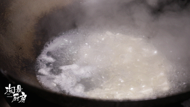 开大火,锅内加冷水,放入豆腐块煮沸。