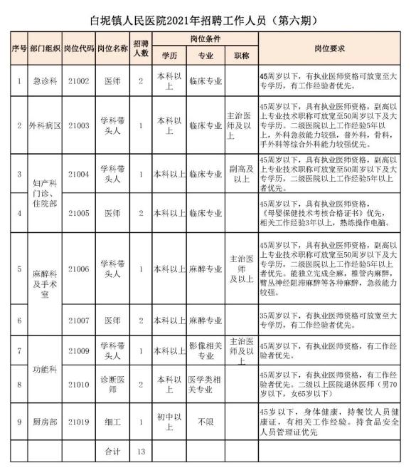 医院设有综合门诊(内、外、妇、儿、中医、五官、康复、骨伤科),并设有急诊、发热门诊及内科、外科住院病区,配备一批先进的医疗设备,逐步开放达200张住院床位。现因业务发展需要,向社会公开招聘。