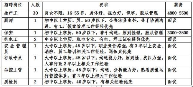 要求:男女不限,35至45岁,能吃苦耐劳,服从安排。