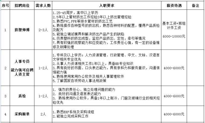 1.性别不限,中专或以上学历,敬业,能吃苦耐劳,遵守职业道德;