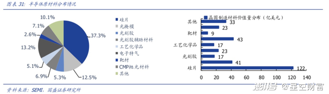 制造芯片所要用到的耗材,包括但不限于硅片、电子特气(特种气体)、光刻胶等,其中成本占比最高的,无疑是硅片(占材料成本的37%)。