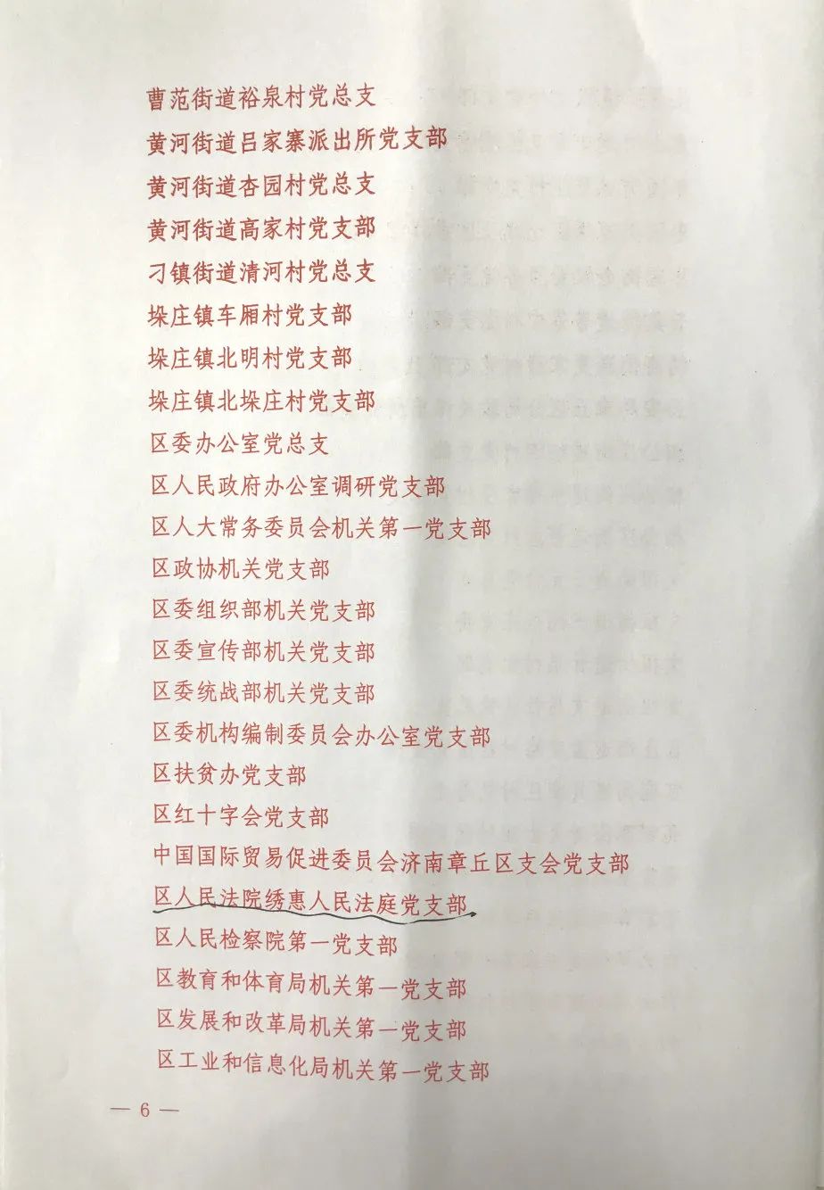 喜报!章丘法院赵会娟法官获评章丘区优秀共产党员,绣惠人民法庭获评章丘区先进基层党组织!