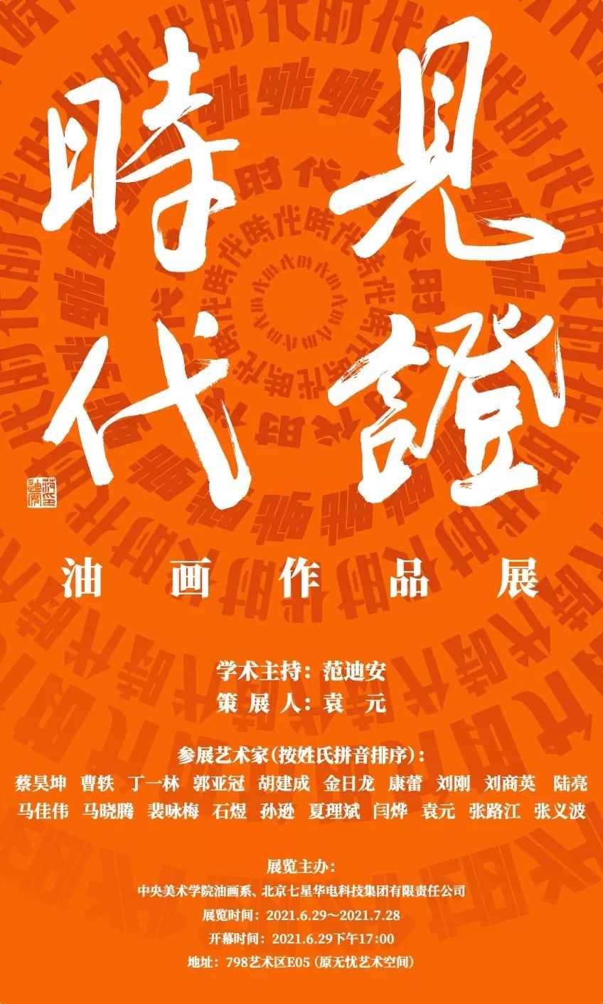 2021年6月29日下午,由中央美术学院油画系和北京七星华电科技集团有限责任公司主办的“见证时代”油画作品展在798开幕。本次展览由中央美术学院院长范迪安担任学术主持,油画系直属党支部书记袁元担任策展人,汇集了20位油画系教师创作的29件作品。展览聚焦建党百年来的重大历史事件和重要历史人物,以艺术之美诠释在中国共产党领导下中华民族实现从站起来、富起来到强起来的历史性飞跃,以时代画卷描绘中国人民阔步新征程、奋进新时代,实现中华民族伟大复兴的光明前景。