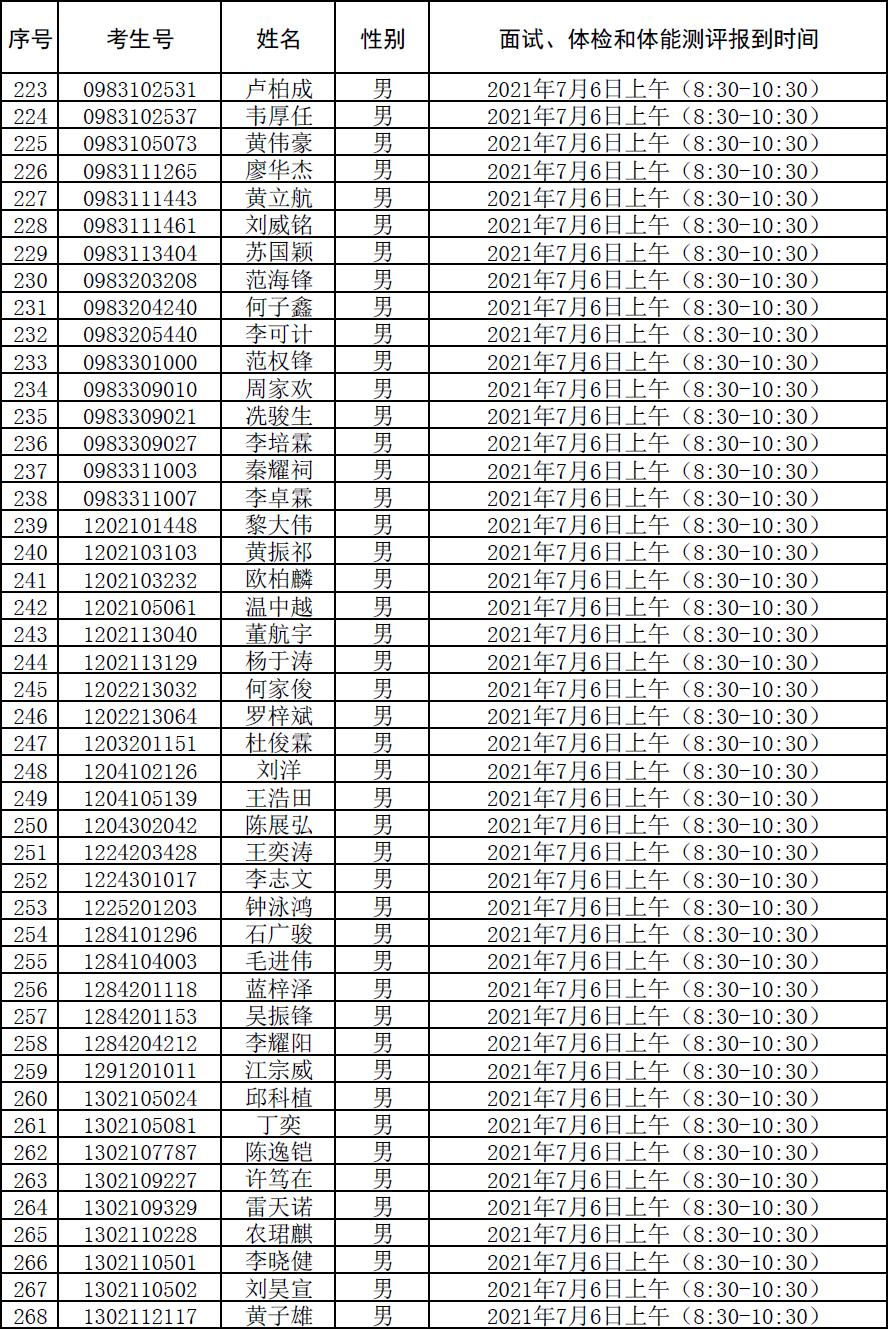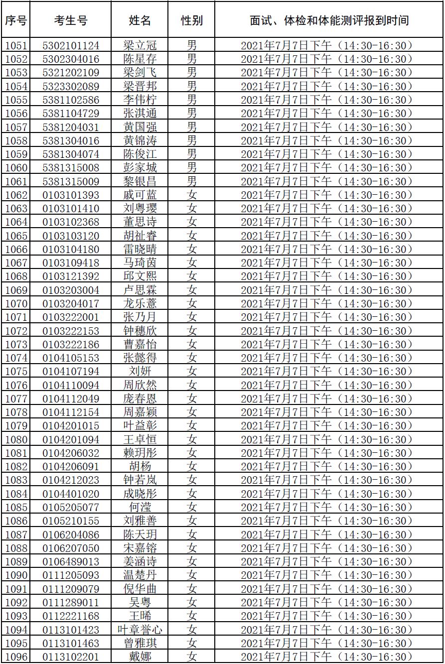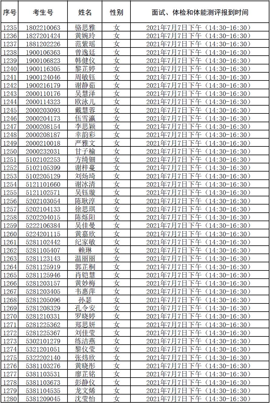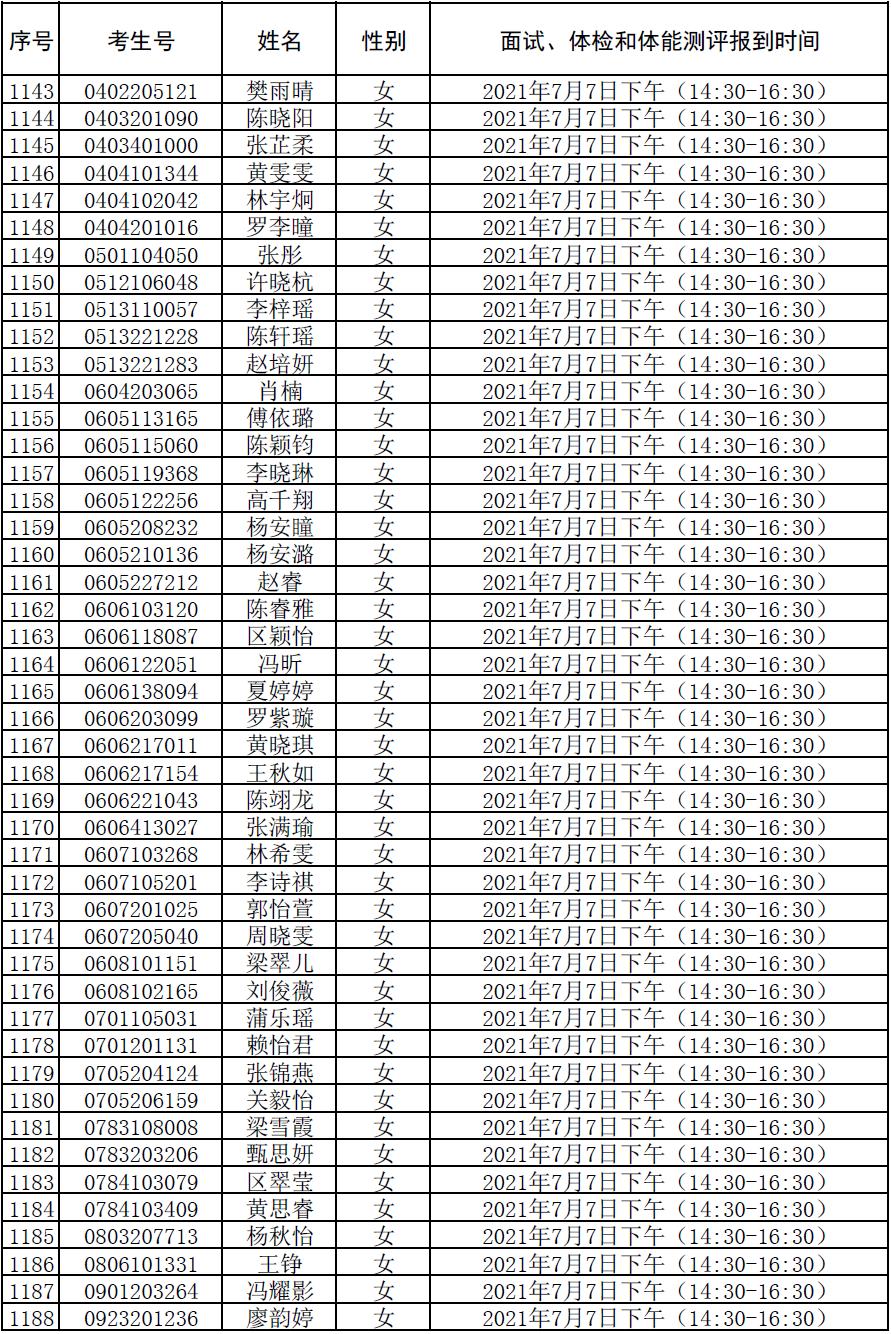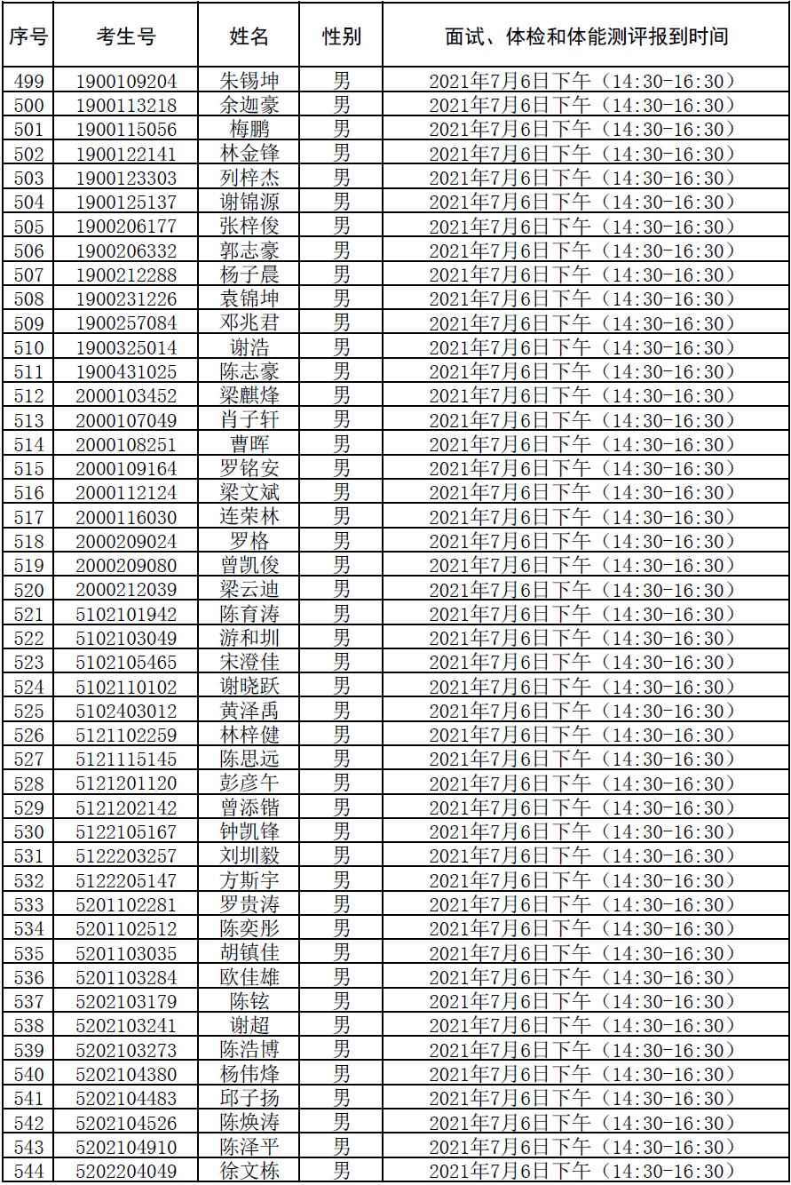 附件:2021年符合参加广东司法警官职业学院司法行政警察类专业招生政审、面试、体检和体能测评资格考生名单及时间安排