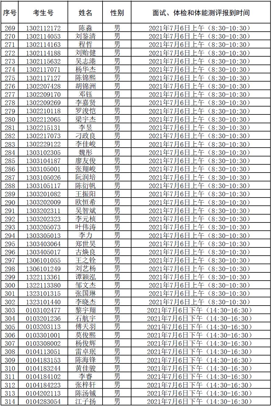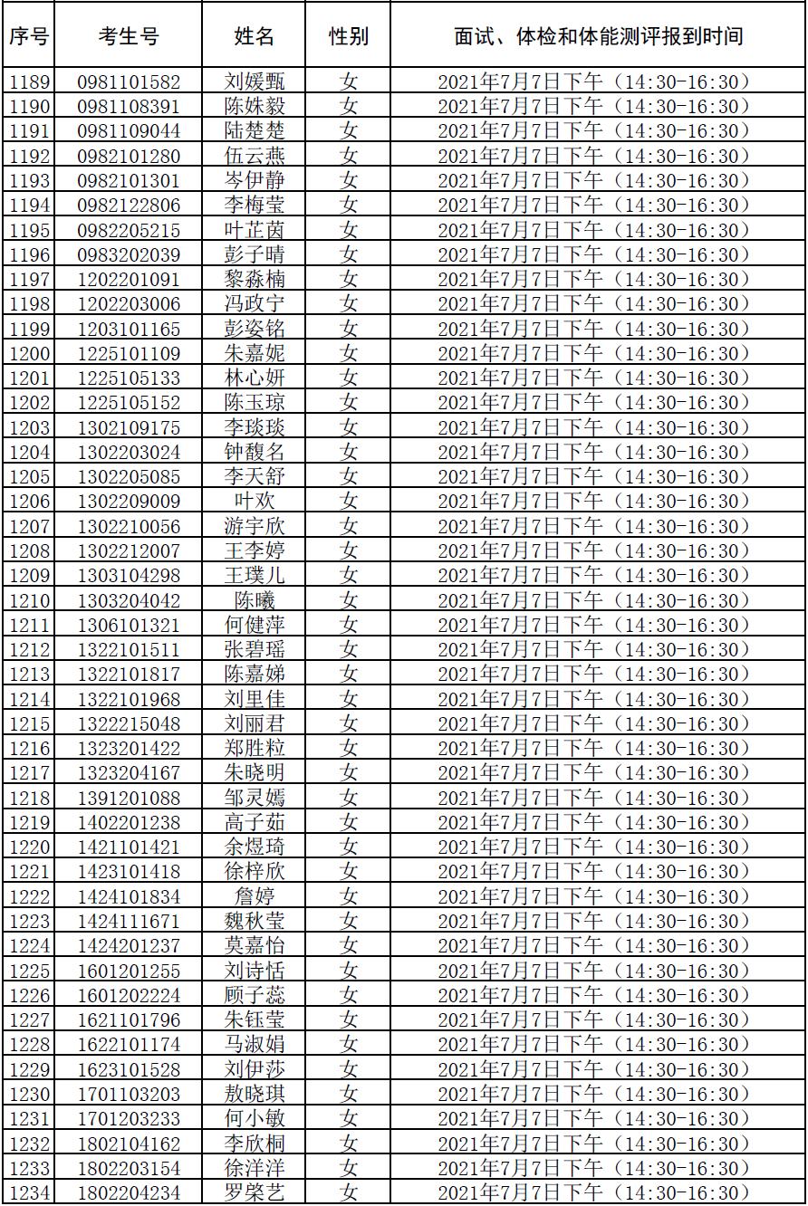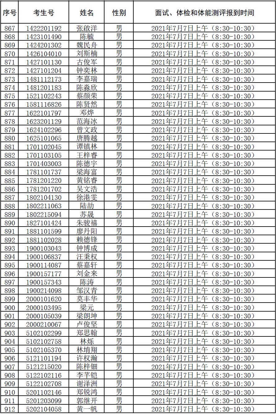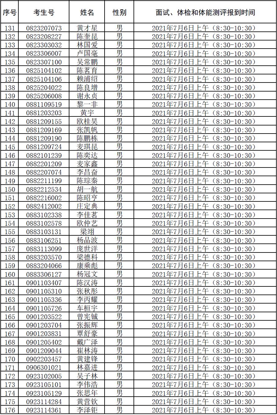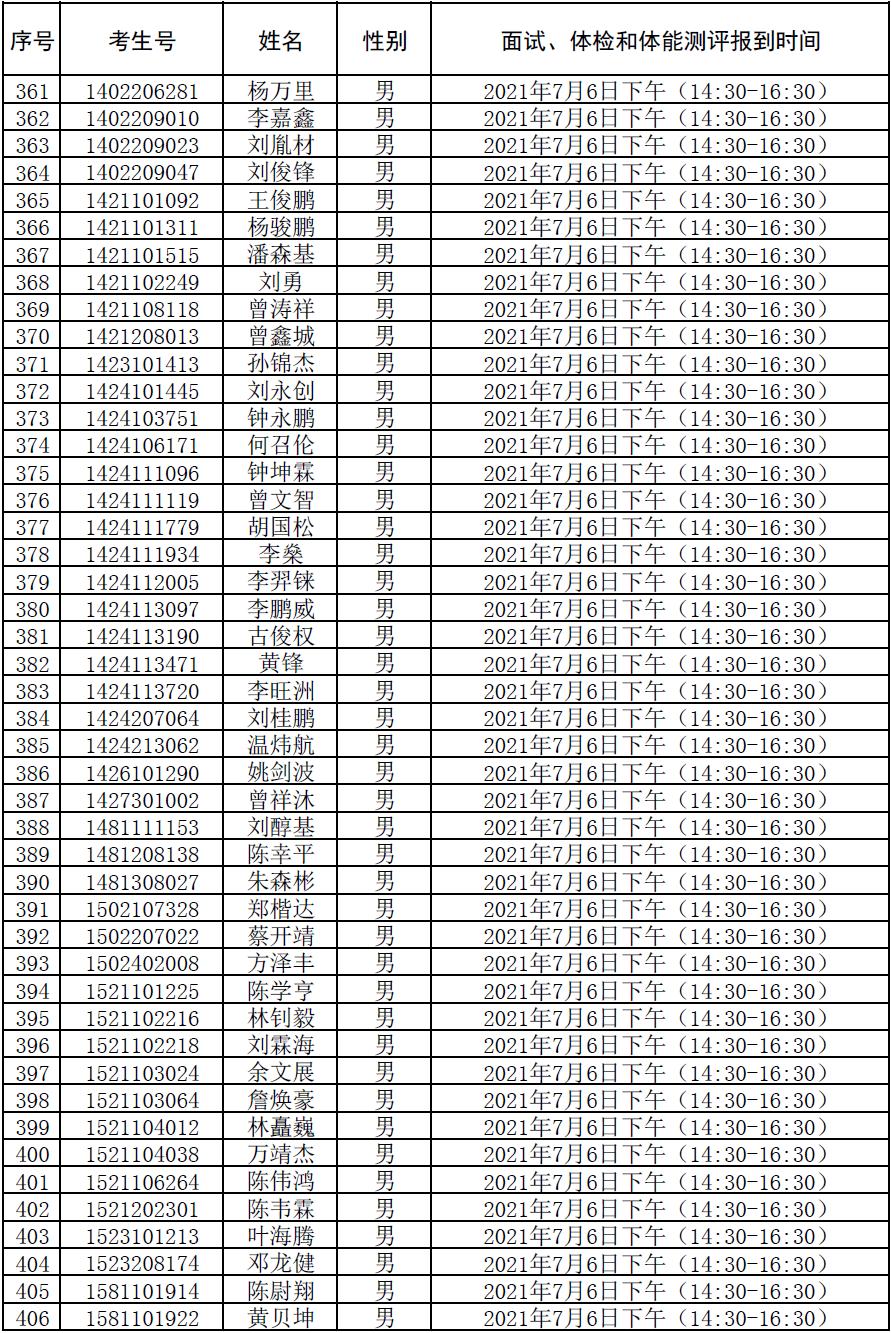 附件:2021年符合参加广东司法警官职业学院司法行政警察类专业招生政审、面试、体检和体能测评资格考生名单及时间安排