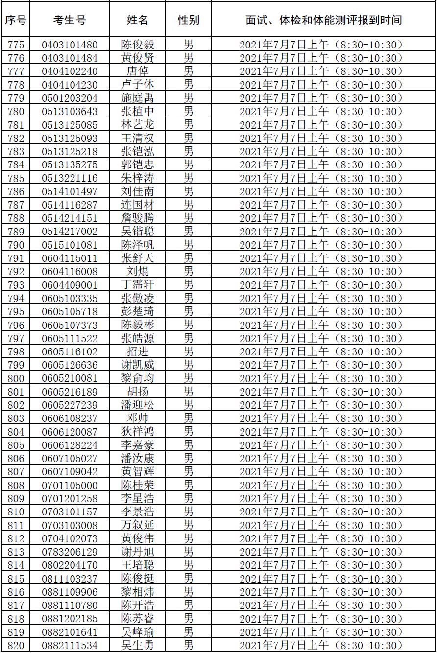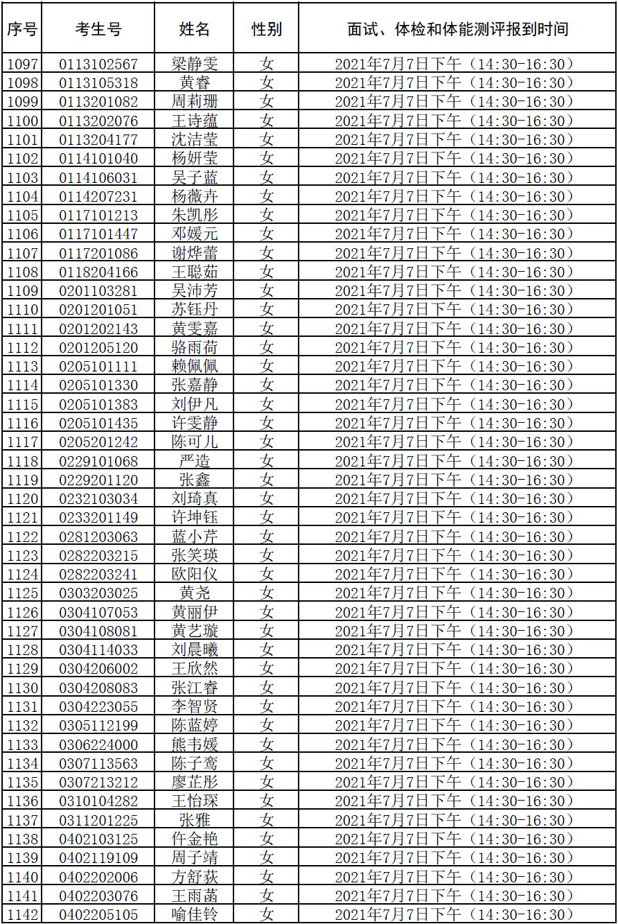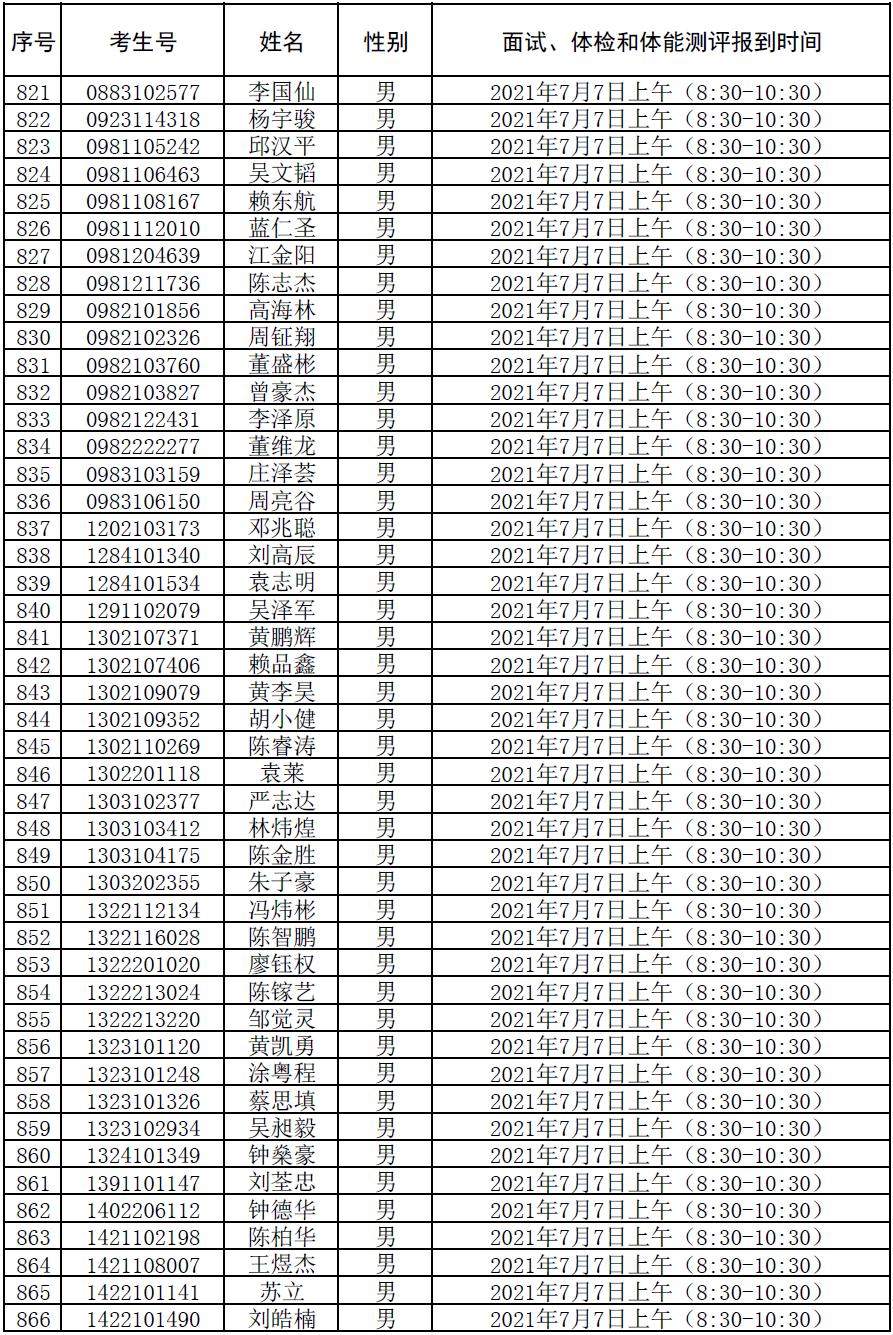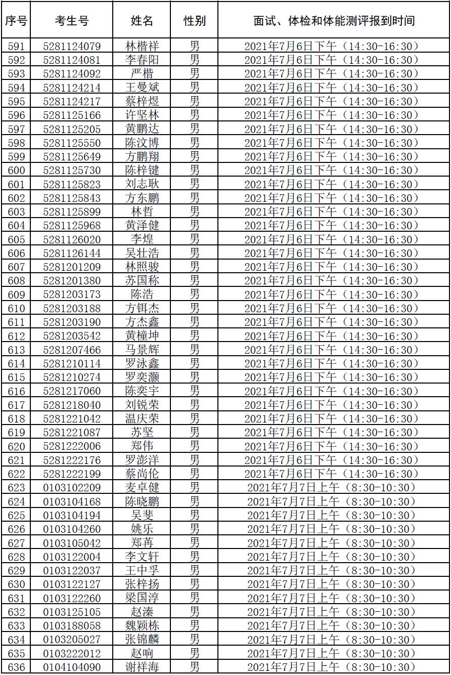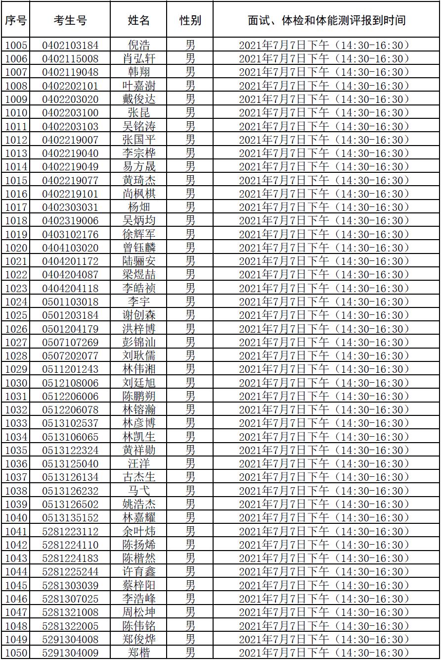附件:2021年符合参加广东司法警官职业学院司法行政警察类专业招生政审、面试、体检和体能测评资格考生名单及时间安排