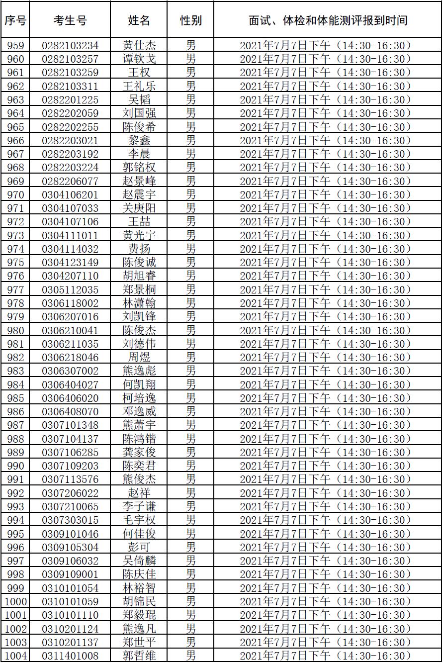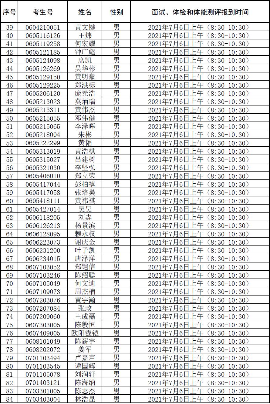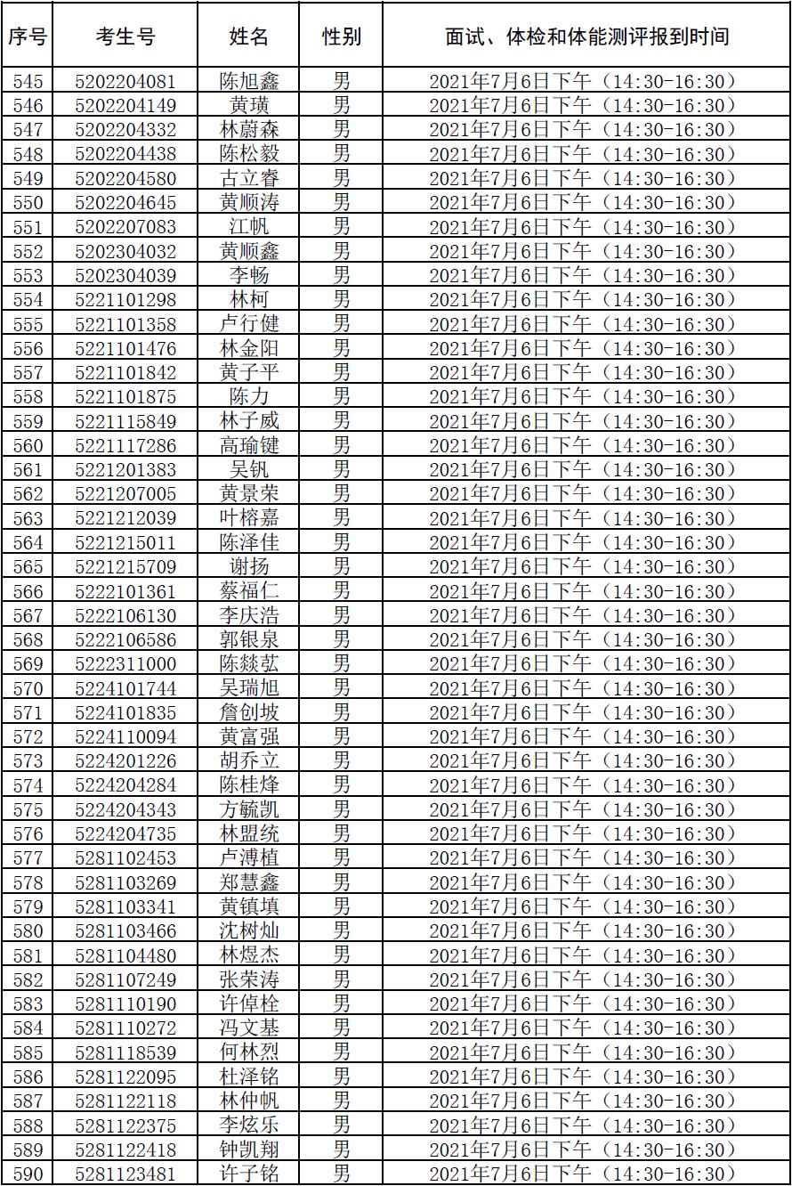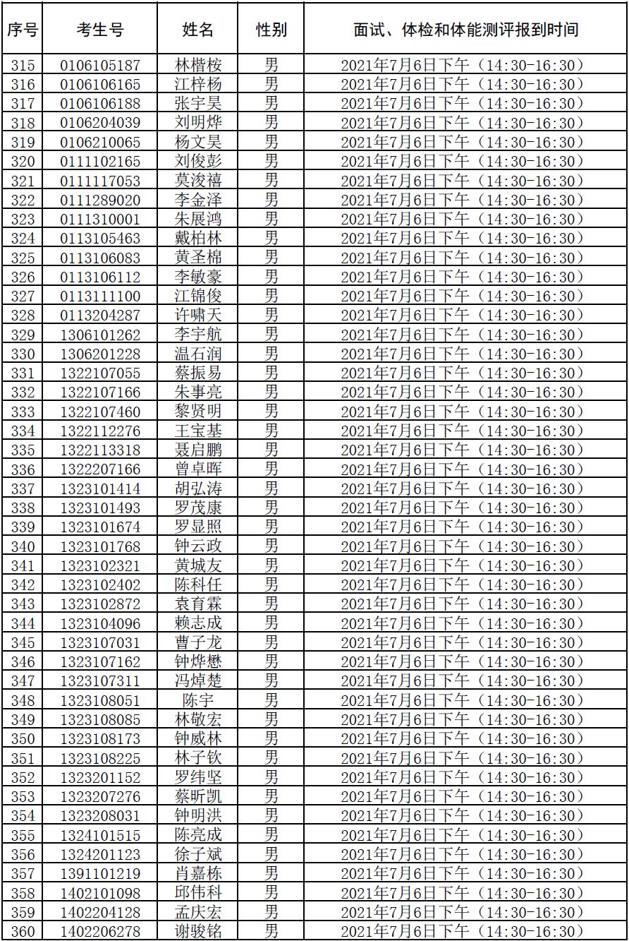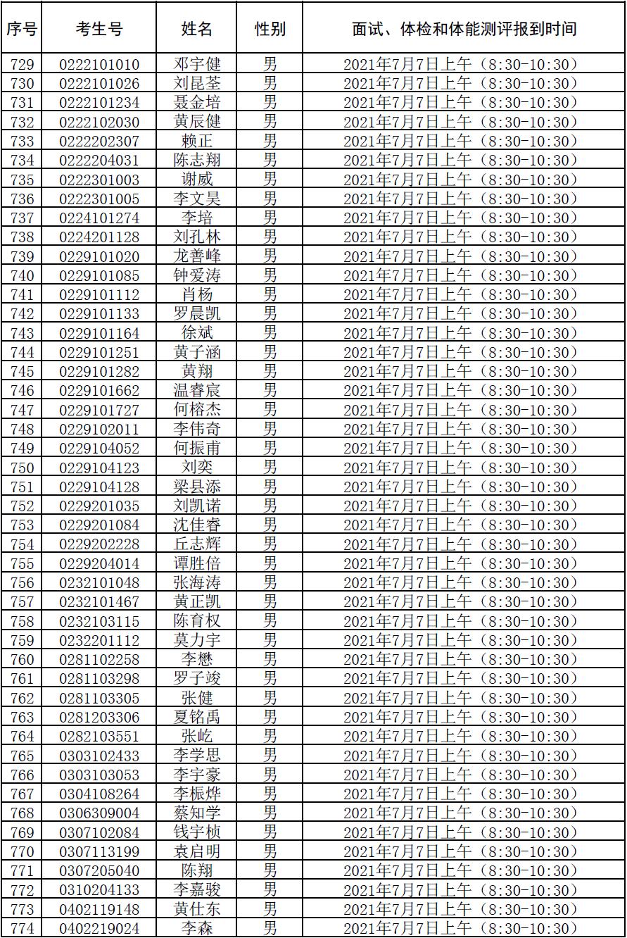 附件:2021年符合参加广东司法警官职业学院司法行政警察类专业招生政审、面试、体检和体能测评资格考生名单及时间安排