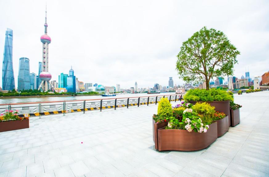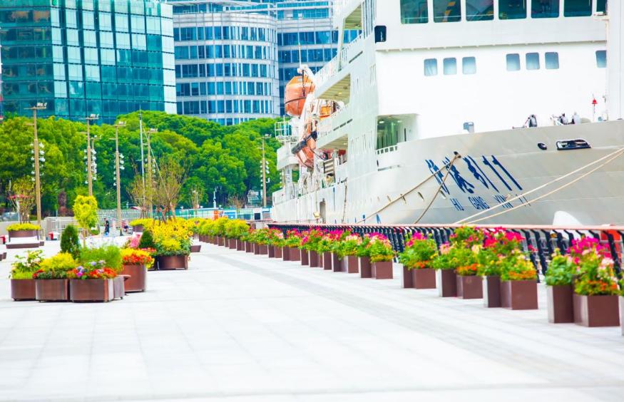 改造贯通,保留港口航运功能的基础上全面对公众开放国客中心码头在拆除原有玻璃围栏的基础上,新增8处5至23米宽的游客出入口,通过台阶、无障碍通道连接上港邮轮城景区和码头,确保市民游客能够便捷到达滨江亲水平台。为提升游客体验,全面升级码头整体景观,对码头面板进行了铺装和绿化设计,优化景观灯光照明,兼顾美观与功能,体现人与自然融合,供市民游客观赏休憩。