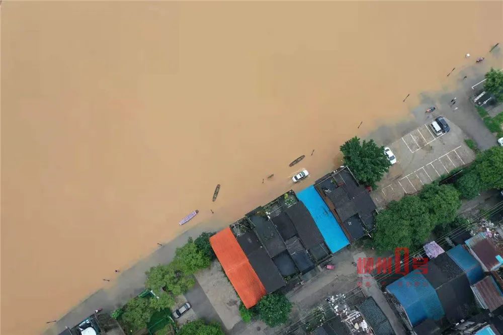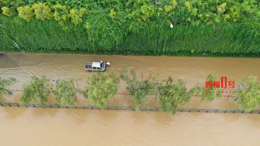 柳江水今早漫上河堤,柳州这个路段已封闭!还有这里水位超警,居民忙搬家