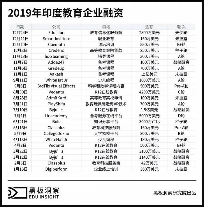 例如,印度在线教育公司Byju's刚刚完成新一轮融资,估值约为165亿美元,位居全球教育公司之首。