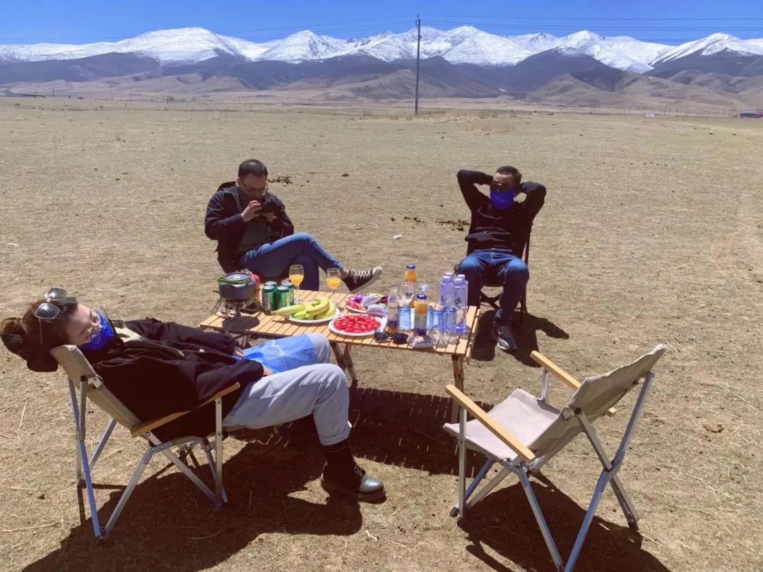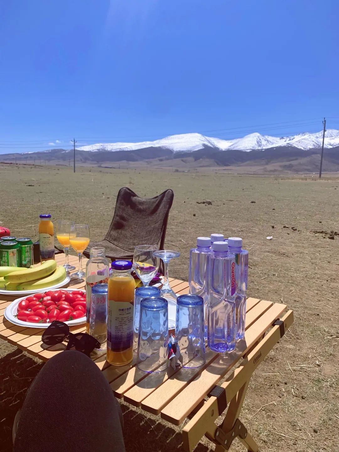 因为这里能近距离接触到青海湖水,然后也方便我们奢侈的摆小桌子,喝下午茶。也可以搭帐篷~
