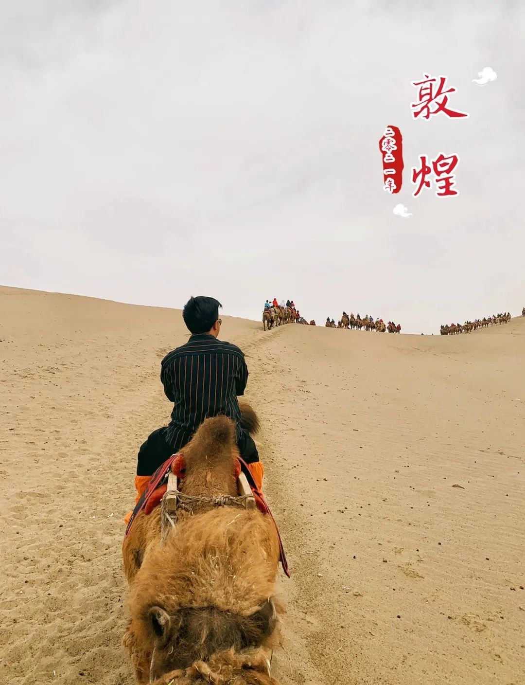 骑骆驼体验是100块,骑累了都还没到终点,特别实诚。当看着一组组驼队排列的沙漠上,恍惚间会感受到诗人出使塞外的画面…