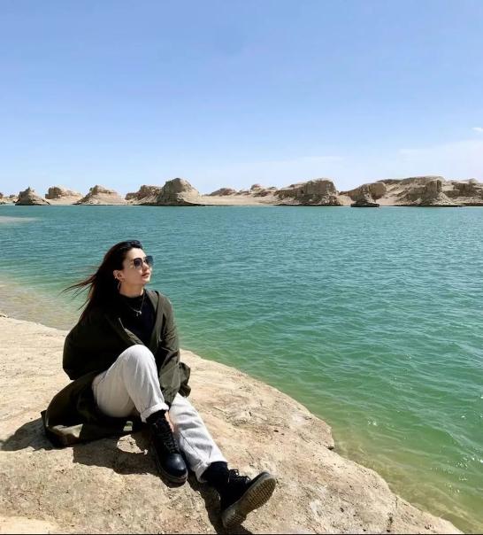 这是个新鲜的地貌元素,碧绿的水上,散步着雅丹风蚀的痕迹,坐着小车一路进去的时候,眼边是流动的景色画…非常美。