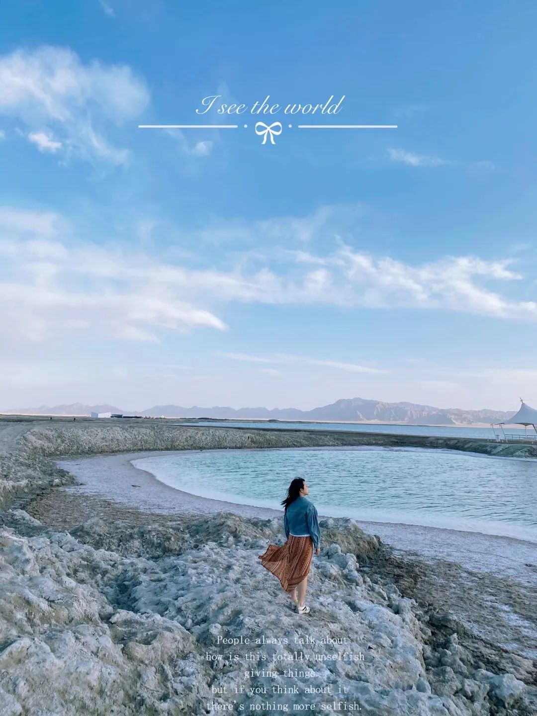 我去的时候,风太大飞不起航拍,就在湖畔的礁石拍了拍,异域感也很强。但没开了上帝视角,实在看不到网上视频里的样子…