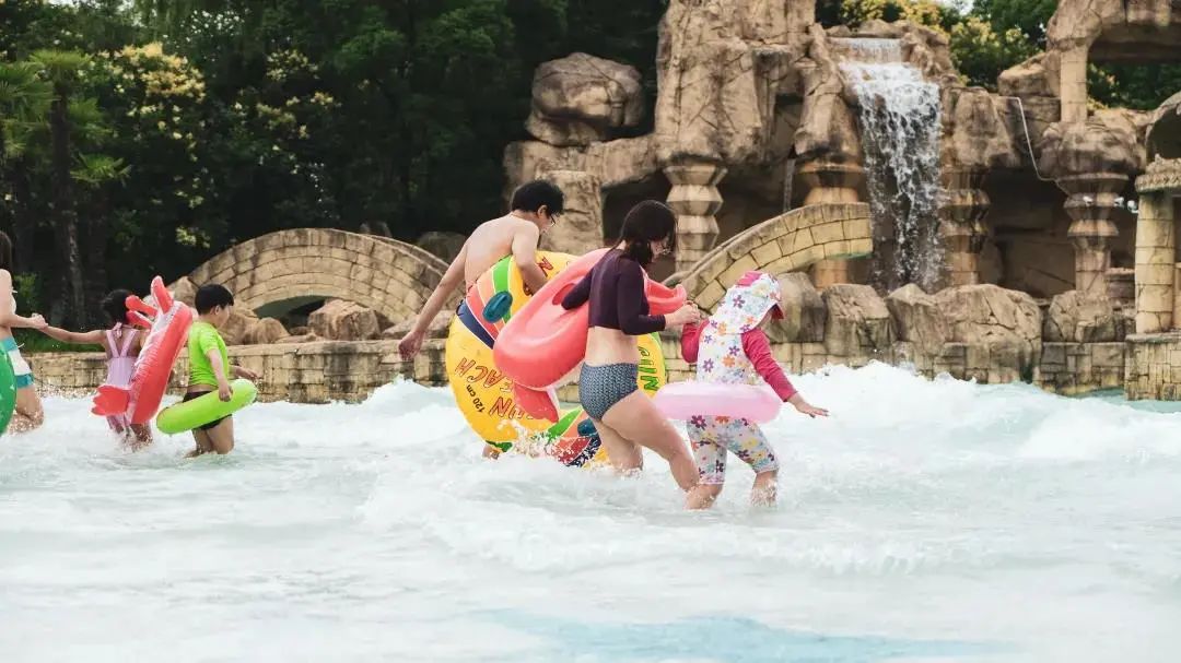 从惊险刺激的彩虹滑梯飞速入水,风驰电掣的感觉让人大呼过瘾;造波池里,浪花翻腾,水上充气乐园传出阵阵尖叫、欢笑,一头扎进水里,加入一秒降“燥”的狂欢趴吧~