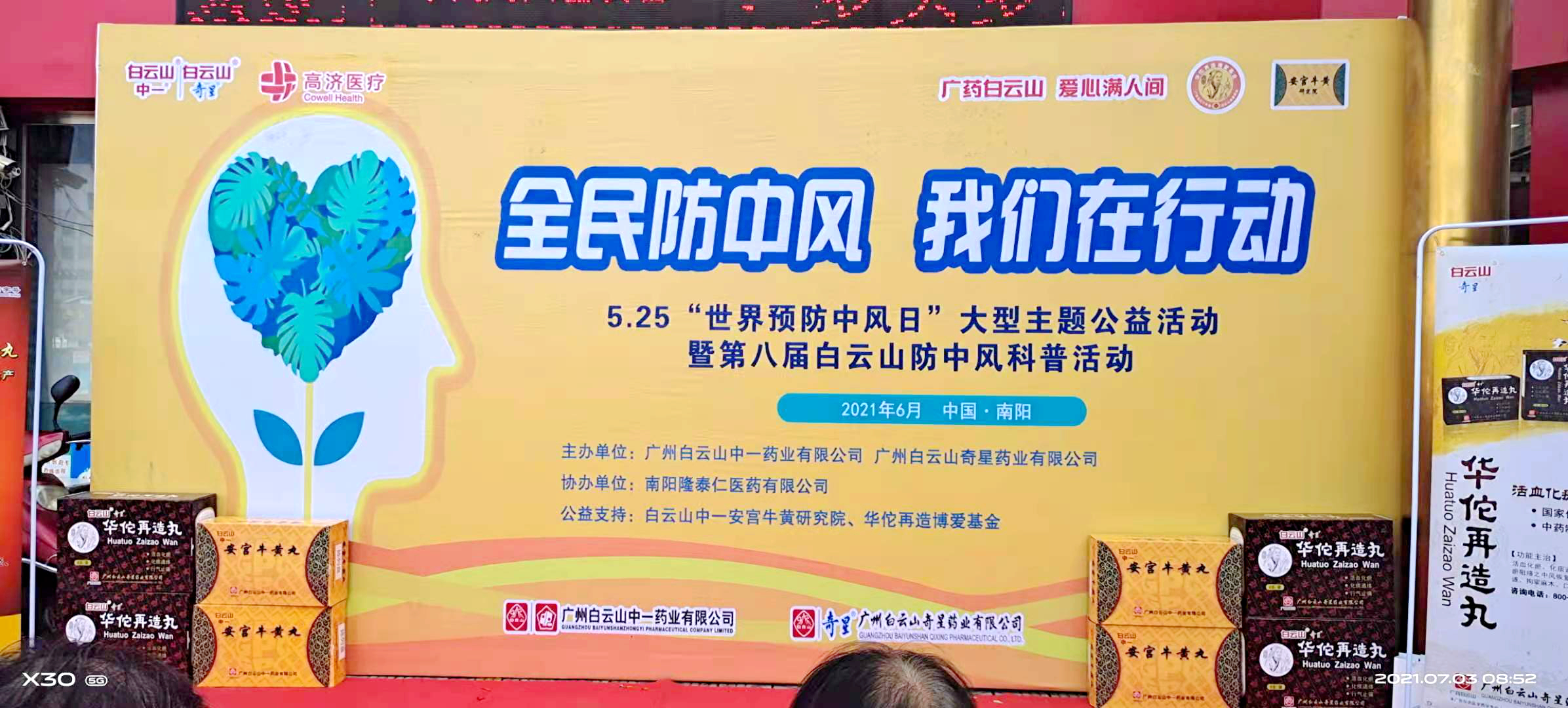 据了解,为唤起社会各界对中风预防的重视,2021年“世界预防中风日”主题公益活动暨第8届白云山防中风科普活动在广东、湖北、辽宁、广西、河南、山东、湖南等地同步启动。科普活动形式多样,包括中风防治知识宣讲、现场专家咨询、中风患者贫困家庭帮扶、华佗太极健身操演示、穴位推拿按摩等项目。据活动主办方白云山中一安宫牛黄研究院、华佗再造博爱基金的负责人介绍,这已是机构连续第8年开展预防中风大型公益活动,预计全国逾4000人次直接参与其中,受惠家庭群众接近8万人。活动旨在联合专业医疗机构、连锁药店、社区服务单位等各界力量,提升国民防治中风意识,为改善国民健康状况贡献力量。