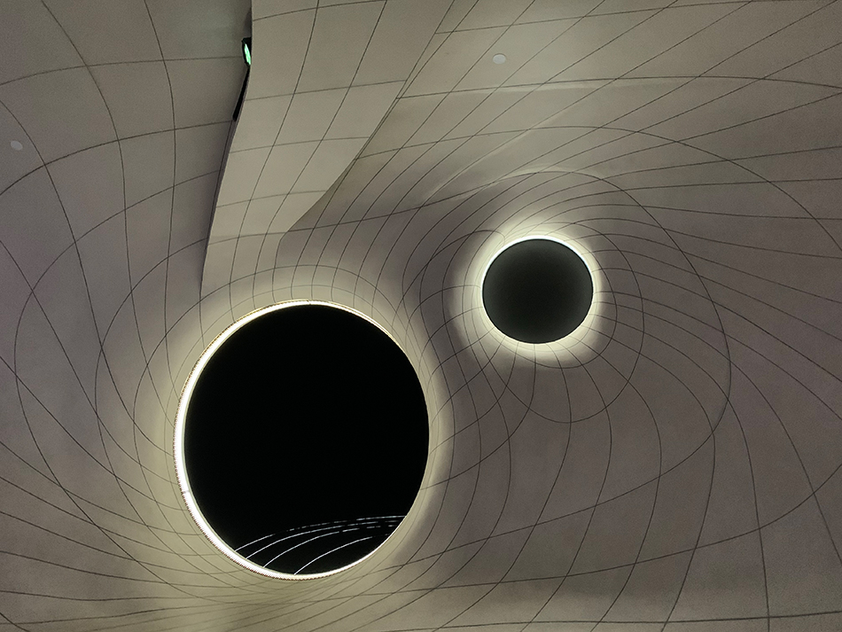 这一设计源自对于轨道运动的形式化抽象,不仅展现了天文学概念,而且可以真实追踪太阳在天空中的运动,使整个建筑成为一件可以表现时间流逝的大型天文仪器。特别是夏至前后,光影与地面标记的重合成为一种节气的标志。