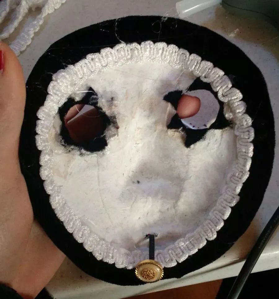 这种面具来源于16世纪法国贵妇佩戴的面具Visard,不同之处是有开小口和使用的珠子并非纽扣。