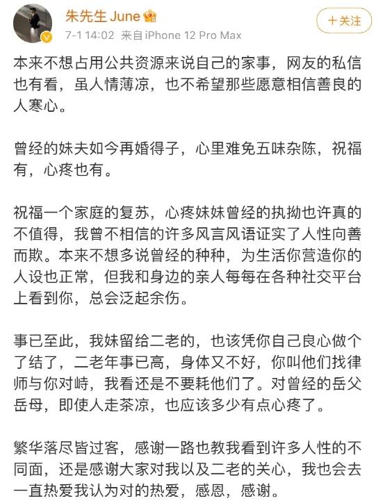 虽然字数不多,但信息量巨大。他首先祝福了林生斌的再婚生女,“这是一个家庭的复苏”。