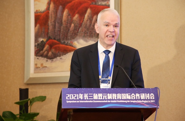 乔治·施泰德在题为《发展——合作——创新过去、现在与未来》的报告中指出,高校是教育的核心部分,职业教育引领创新之路。中德合作由来已久,他希望能与更多高校建立良好的沟通合作关系,运用双元制教育模式,推动人才培养方案改革创新,使学生的综合能力和专业技能不断提高,让中国更多的职业院校受益。