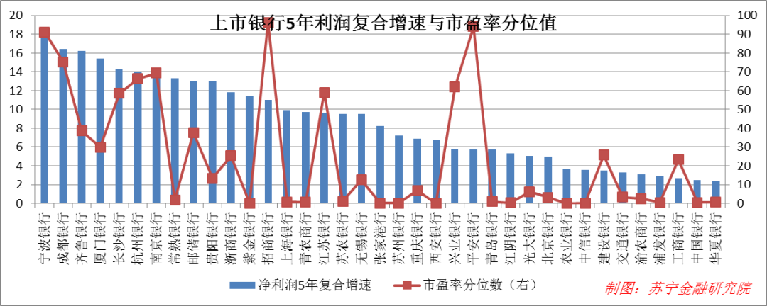 以上市银行5年(2015-2020)净利润复合增速来看,宁波银行、成都银行、齐鲁银行、厦门银行处于高位,但只有宁波银行、成都银行录得较高的估值水平;同样,平安银行、招商银行的复合增速并不凸显,但估值却处于高位。
