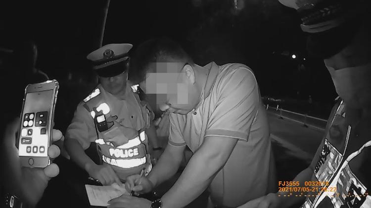 汪某知道“再次酒驾”的严重性。他央求民警“都是乡里乡亲的,抬头不见低头见的。咱有的是(钱),用它(钱)摆平还不中”。趁执勤民警开处罚通知书时机,汪某从裤子口袋里掏出一叠现金,想塞进民警裤兜里,被民警严词拒绝,并警告他全程录音录像,这样只会加重对其处罚的程度。见民警不为所动,汪某又向民警哭诉,“二次酒驾肯定要拘留,我听说进过‘局子’的人,对孩子考学、入党都有影响,千万别因为我影响了孩子的前途啊”。执勤民警立即对其进行了普法教育。
