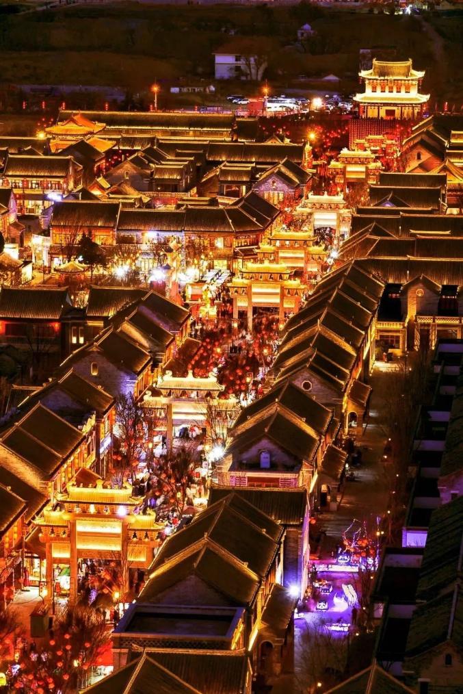 万家灯火,灯盏错落点缀在亭台楼阁之间