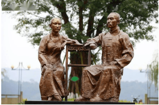 位于南溪区滨江新城的朱德与陈玉珍铜像(罗平 摄,图片来源:中国南溪网)