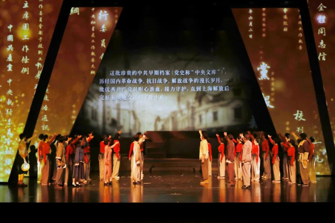 演出期间,上海市档案局(馆)在九棵树未来艺术中心(大剧场)大厅主入口处,推出“档案里的‘一号机密’”主题展览,让广大观众“沉浸式”了解这段上海的光荣历史,润物细无声地将忠诚主题传递,使观众们获得心灵触动与精神洗礼。