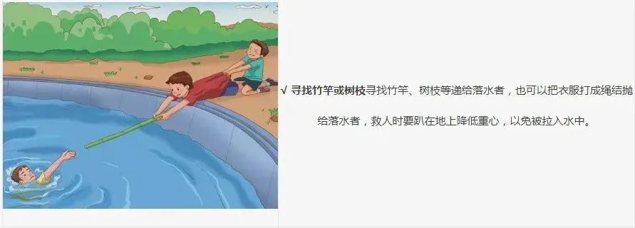 要么丢给落水者触手可及的救援工具,要么大声呼喊大人,打110、120。