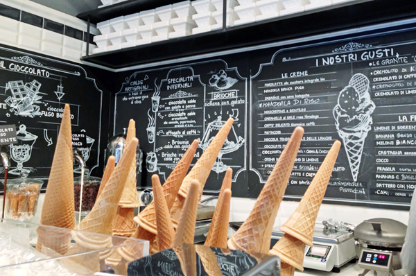 很多人都知道在意大利点ice cream会被翻白眼,你得说geleto,哈根达斯在这里只能在街角便利店打折出售。gelato的特点是少糖、少脂、低卡路里,得再学几个常用语点单才更从容,比如“要杯子还是要蛋筒”是“Cono o coppetta”, il tartufos是一种撒可可粉或巧克力外壳的软心冰淇淋,il sorbetto是水果冰淇淋,冻得比较厉害,la grattachecca是一种混入碎冰和水果条的冰淇淋,la granita则是一种含冰量很高的冰淇淋,全意大利最受欢迎的是咖啡口味。冰淇淋店在整个半岛都维持很高的水准,要论名气,在罗马得去试试Gelateria I Caruso,他们的黑巧克力冰淇淋奶味浓重,口感绵密,必点。在佛罗伦萨则要去Gelateria dei Neri点一份焦糖芒果口味,当地人也很喜欢,猎奇的话可以试试辛辣口味的古冈左拉乾酪冰淇淋。在米兰,常年排队的那家是Il Massimo del Gelato,最受欢迎的是杏仁和巧克力口味,所有口味都是真实食物调出来,如果够胆,可以试试辣椒口味。若论水平稳定、商业成功的全国连锁明星,非Grom莫属,它在意大利34个城市有45家分店。