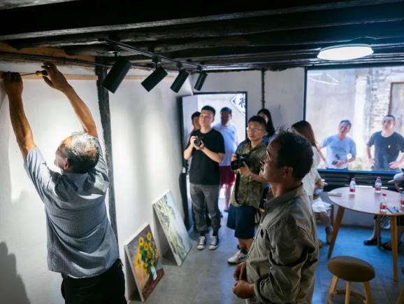 ● 得知情况后,越城区斗门街道办事处准备了一间画室,接他来举办入驻仪式,位光明仍穿着灰衬衫和破旧的牛仔裤前往。