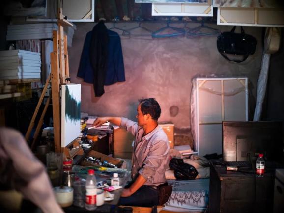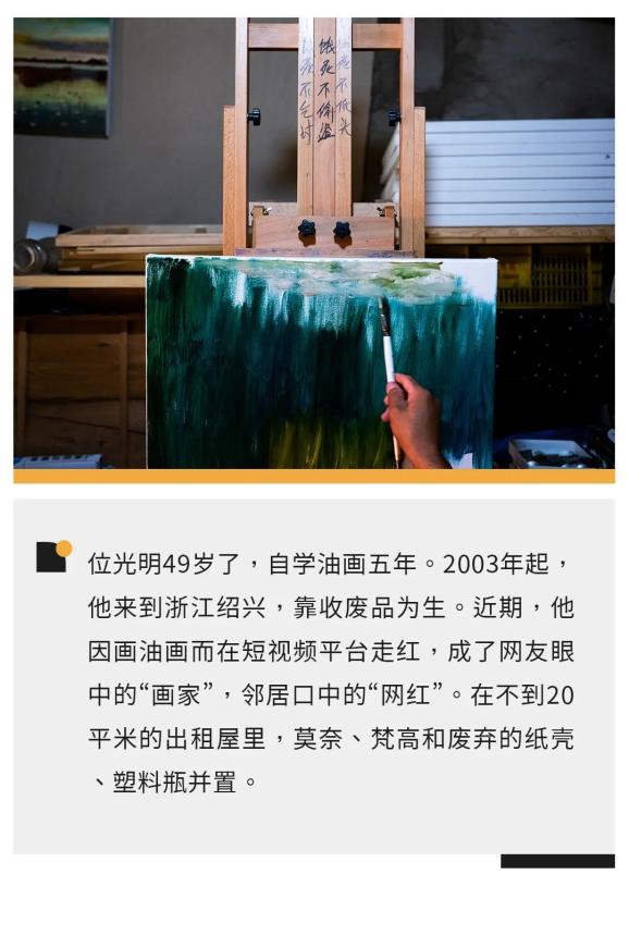 ● 随着油画订单的增多,位光明去工厂收废品的时间变成每周四至五天,其余时间在家中作画。