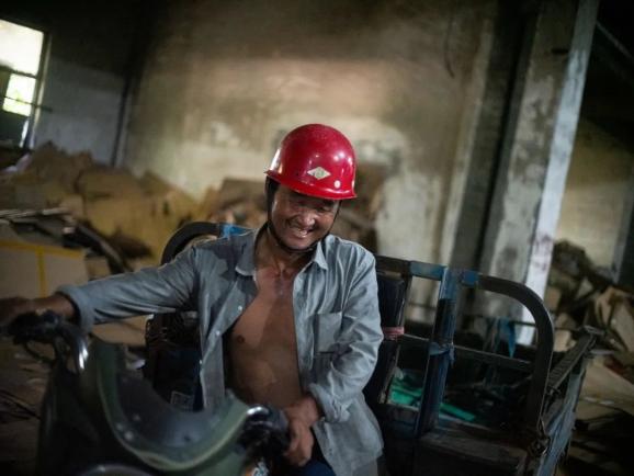 ● 废品收购站的工作人员知道位光明走红后,时常和他调侃几句。干起废品收购的营生后,位光明一改沉默的性格,村里人都记得他的热情,笑起来眼睛弯成两道。他的老实也出了名,不缺斤少两,渐渐找到了可以定期回收废品的工厂,收入稳定在四千元左右。这样的日子没过几年,儿子到了要上学的年纪,妻子只得带孩子回了老家,位光明又沉默下来,独居在那间堆满了废品的小屋里。