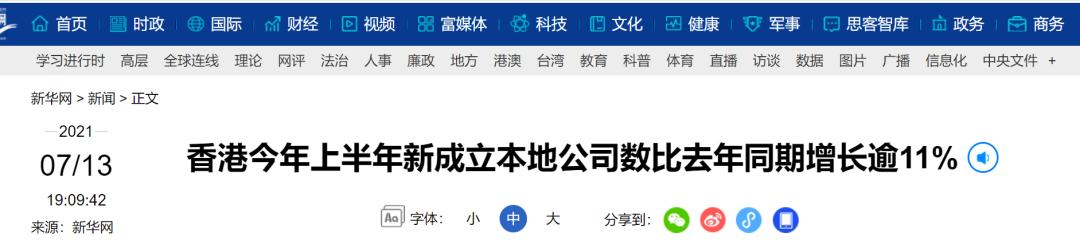 原标题:《香港今年上半年新成立本地公司数比去年同期增长逾11%》