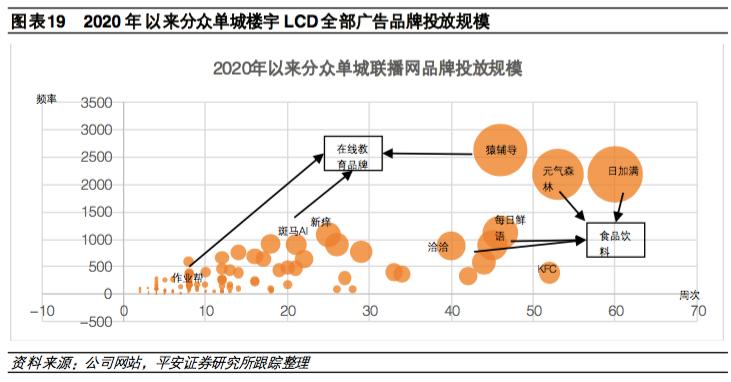 一场场营销战争在电梯、公交站牌、大小银幕上上演。2020下半年,作业帮直播课赞助了一部电视剧、一部电影、一台晚会及九部综艺[2]。2021年的春晚开播前十分钟的广告里,在线教育有七个广告,仅次于酒类的12个和互联网公司的八个[3]。这场广告大战甚至间接推动了分众传媒的业绩爆发。