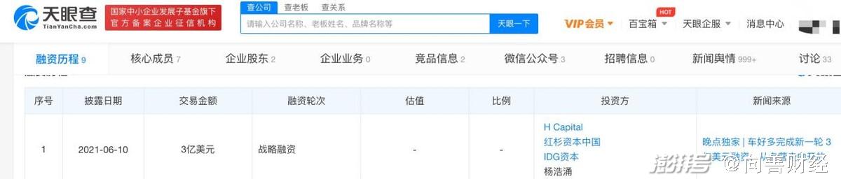 6月10日,瓜子二手车的母公司车好多集团宣布,已完成3亿美元新一轮的融资。根据天眼查App融资信息显示,参与本轮融资的机构包括H Capital、红衫资本中国、IDG资本。