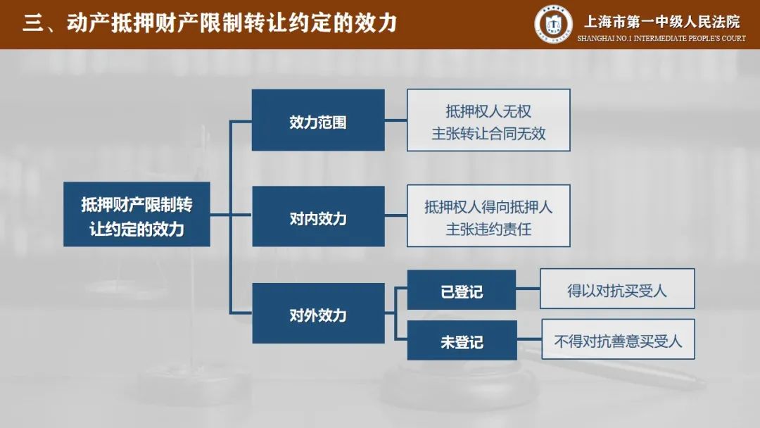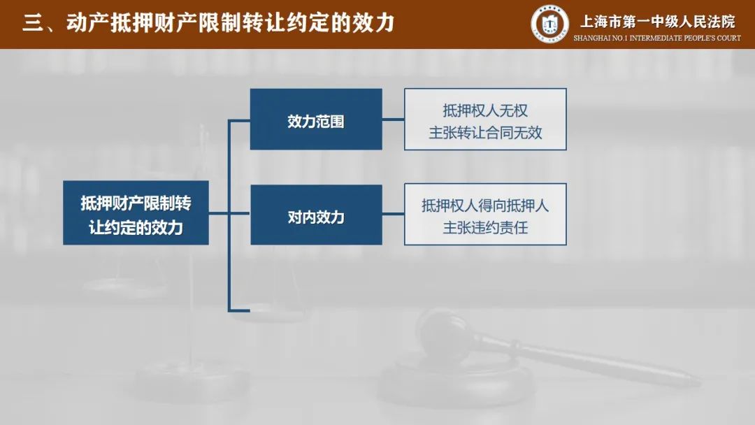 那么在明确了这一点之后,动产抵押财产限制转让约定的效力在认定上还需要区分对内效力和对外效力。