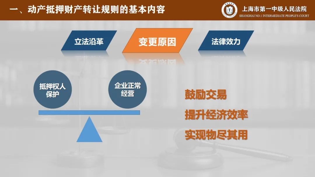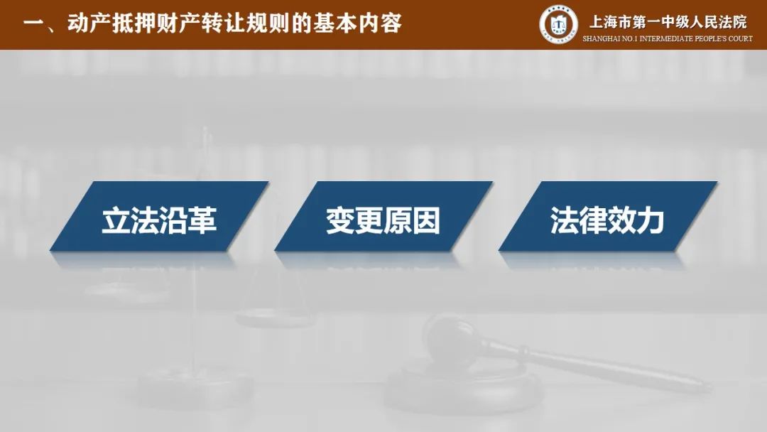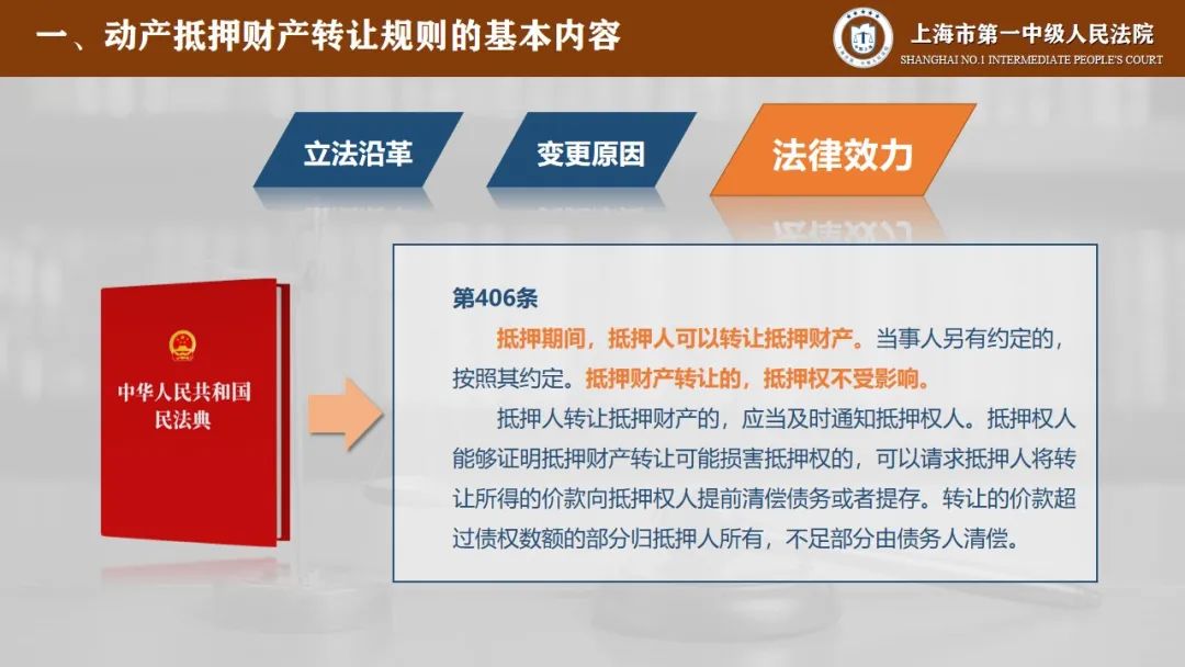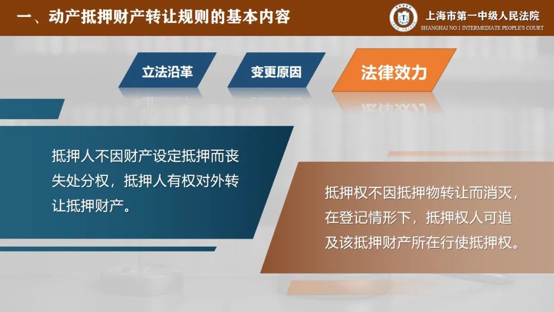 第一部分是动产抵押财产转让规则的基本内容,在这里我们将从立法沿革、变更原因、法律效力三个方面来进行说明。
