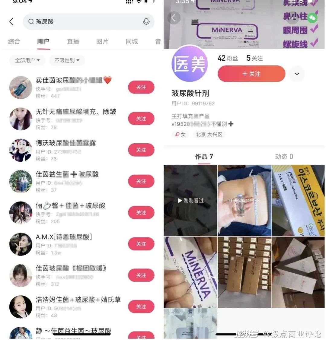 “众所周知的原因,不能说产品名称,但懂得一看就懂。”快手ID名为“玻尿酸针剂”的用户,在一条推销视频中说。尽管从播放量来看,该视频可能受到了限流,但并不影响搜索、显示和播放,以及查看该用户留下的联系方式。