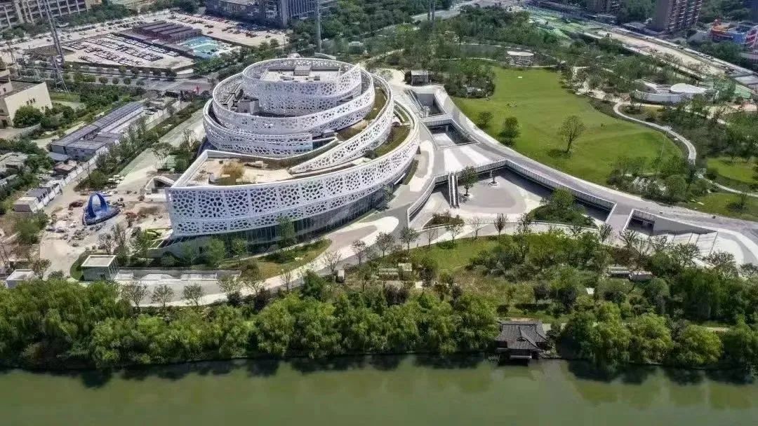 运河大剧院坐落于杭州市拱墅区运河中央公园,于2021年6月完工,进入试运营阶段。剧院建筑面积大,造型设计极富运河文化元素,并且功能齐全,配套完善,兼富文化演出、艺术交流、休闲娱乐等职能,将成为杭州的新驻“文化会客厅”。