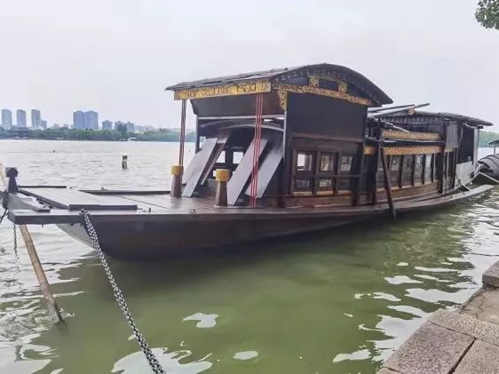 实践团队乘坐游船到达湖心岛,参观了1959年为纪念中共“一大”在南湖游船上胜利闭幕这一历史事件所仿制的红船。