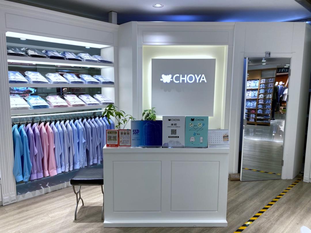 1994年CHOYA品牌来到中国, 2015年上海服装集团获得CHOYA蝶矢衬衫自主经营权,依托中国先进制造能力实现AC4.0和SSP免烫工艺,防褶皱率高出国内外普通免烫衬衣1.5倍,更以抗菌、防污、透气深受企业白领、商务人士喜爱。产品还以全新的理念塑造品牌形象,打造符合国人审美、引领商务时尚的高品质免烫衬衫。